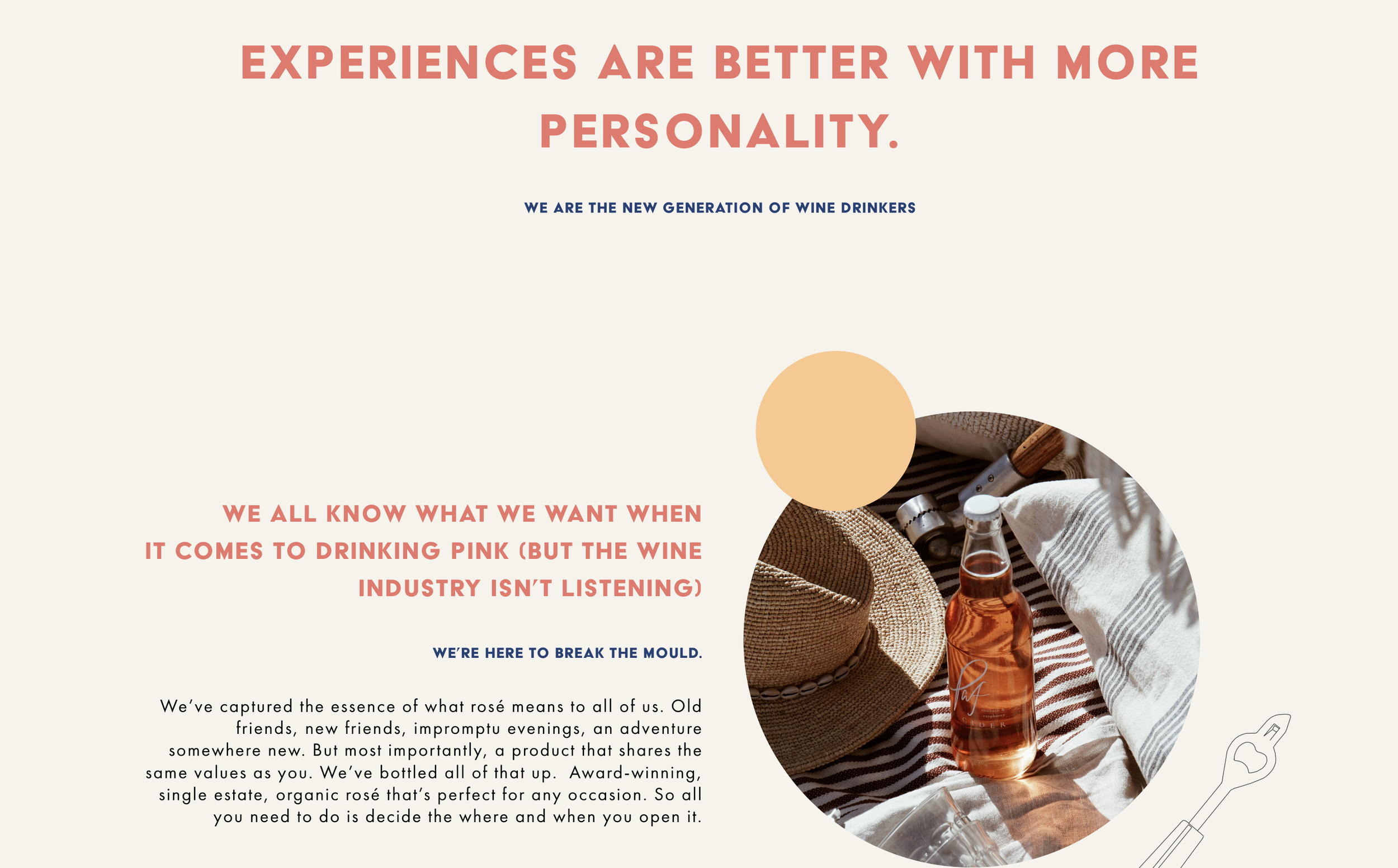 We wanted to create a vibrant brand personality that valued spontaneity, instead. We wanted to share moments where the company you share a bottle of wine with was as important as the thing you were sipping.
